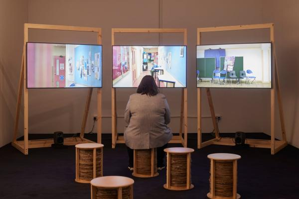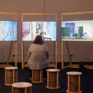 今年特纳奖提名艺术团体的作品正在英国考文垂赫伯特美术馆和博物馆(Herbert Art Gallery and Museum)展出,这是泰特尝试扩大其在伦敦之外的参与之举。展览将持续至2022年1月12日,其中有一个装饰有手工缝制的抗议旗帜的舒适酒吧,由来自贝尔法斯特的团体Array完成;一个由小组Project Art Works运营的工作坊,具有“神经多样性”(neurodivergent)的成员们会在整个展期内创作艺术;还有艺术家社群Gentle/Radical的影片,该群体由艺术家、宗教组织成员、年轻工人以及活动家等组成。