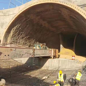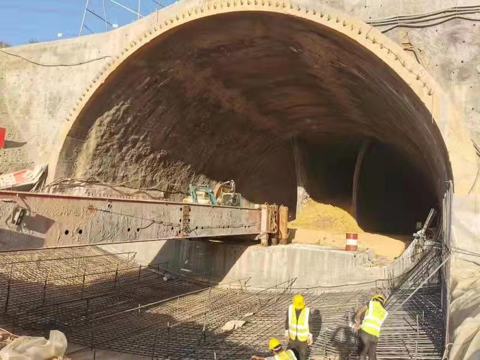 为保证隧道施工安全高效推进,深汕西TJ8合同段弘扬铁道兵“拼搏”精神,凝心聚力,攻坚克难,克服围岩差、工艺难、标准高、任务重等各类特殊因素,着力打造智能、绿色工程建设,创新工艺工法,统筹资源配置,隧道施工顺利实现“一洞九线”机械化、智能化配套施工。一是超前地质预报作业线,通过全电脑控制三臂凿岩台车进行超前水平钻、加深炮孔预报等探测,准确判别掌子面前方围岩。二是开挖作业线,双侧壁导坑法施工,全风化、强风化砂岩采用挖掘机开挖,中风化砂岩中导坑采用悬臂式掘进机开挖,其余部位采用弱爆破开挖。三是装运作业线,出渣配备大功率、高斗容量的挖掘机、装载机、自卸车,双装载机作业,提高出渣效率。四是支护作业线,配备三臂拱架安装机,可多榀拱架同步安装;锚杆(超前)作业采用全电脑三臂凿岩台车,凿岩臂打孔,作业框安装和注浆,注浆采用智能注浆一体机,大断面可双机作业。五是仰拱施工作业线,端模、边模、覆膜采用一体化模板,通过液压栈桥上轨道小车牵引移动。六是防水板钢筋作业线,防水板铺挂配备防水板自动铺挂台车,配双卷轴小车,通过环向牵引轨道展铺防水板。七是二衬作业线,采用智能二衬台车,无轨行走,溜槽自动逐层分仓同步入料,全自动振捣,单斜孔冲顶,带模注浆。结合三维激光扫描、流量监控进行防脱空检测。八是沟槽施工作业线,沟槽采用一体式沟槽台车,桁架式门架,一体化模板。九是辅助施工作业线,配备人车分闸系统,人机定位系统。行人与车辆通道完全隔离,实现人车分流,同时对作业人员、车辆自动考勤定位。