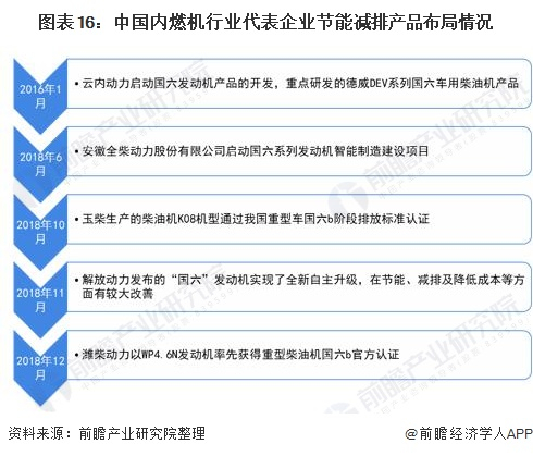 在国内外环保政策逐渐收紧的背景下,随着2019年7月1日我国部分省市率先实施国六标准以来,我国商用车市场也全面进入了“国六时代”。面对严苛的国六排放标准,内燃机行业龙头企业早已超前布局、抢占先机,满足行业政策、市场以及用户的不同需求。例如,2018年10月由玉柴生产的柴油机K08机型在中汽研汽车检验中心(天津)有限公司通过了我国重型车国六b阶段排放标准认证,成为国内第一款拿到国六b阶段排放标准认证报告的国六柴油发动机。到2018年底,国内内燃机行业代表企业已经陆续完成“国六”达标产品布局。