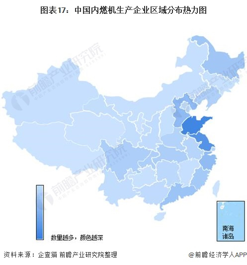 从我国内燃机产业生产制造企业区域分布来看,行业企业主要分布在山东地区,相关企业数量超过1000家;其次是在江苏、河北、浙江等地区,相关企业数量超过400家;其余地区,如贵州、海南、青海、西藏等省份虽然也有企业分布,但是数量极少。