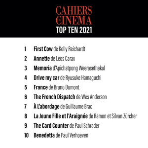当地时间11月29日,法国权威电影杂志《电影手册》(Cahiers du Cinéma)在其官方社交媒体账号公布了2021年度的十佳影片。其中,过半是在今年戛纳电影节首度亮相的作品。有趣的是,今年欧洲电影届最具话题性的两部法国本土制造——拿下戛纳电影节金棕榈奖的《钛》和拿下威尼斯电影节金狮奖的《正发生》均未入选。
