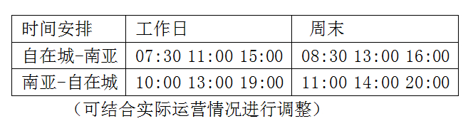 目前,金地自在城社区巴士拟定路线在金地自在城营销中心至南亚(拟定目的地)进行往返。工作日及周末各有三趟班次,满足不同人群出行便利。