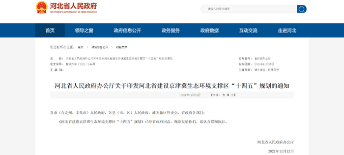 近日,《河北省建设京津冀生态环境支撑区“十四五”规划》(以下简称《规划》)出台。