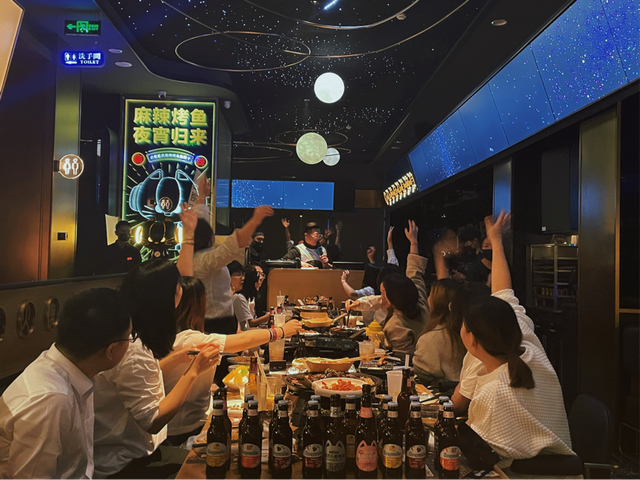 2020年11月起,烤匠天府三街店和科华北路店相继推出了夜宵服务,营业时间延后至凌晨2点。在这次升级调整中,还新增了特调酒服务。撸串喝酒,消费者甚至不需要走出烤匠的店门,就能把“夜生活”的娱乐活动安排得“巴巴适适”了。据观察,目前这2个门店经常有年轻人的群体聚会活动。这正是烤匠“社交化”探索的成果。