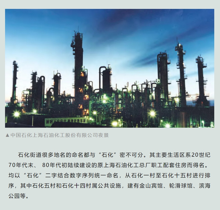 石化街道位于金山区南部,南濒杭州湾,面积19.13平方千米。以辖区内上市公司、国家特大型化工企业 ― 中国石化上海石油化工股份有限公司的简称而得名。
