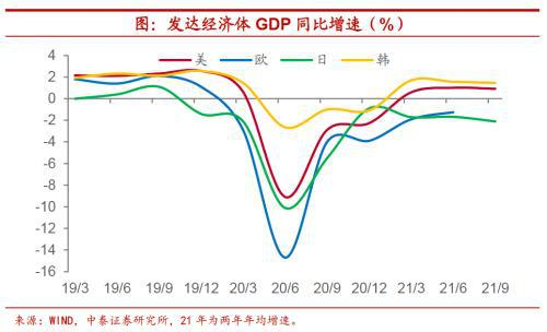 割裂全球联系,阻碍联动复苏。从发达经济体的经济恢复进程来看,多数已步入到增长的稳态区间,仅仅靠自身的动能去拉动经济,力量已较薄弱。例如美国19年GDP增速大概在2个百分点左右,今年二季度,如果剔除掉基数影响来计算两年平均增长,已经达到1个百分点,而三季度增速也保持稳定,再比如日本,19年底经济增速-1.4%,今年一季度就已经达到-1.6%,甚至二三季度还有所下滑。后续带动发达经济体增长修复的力量本应来自于全球经济恢复一体化程度的提高,但如果疫情再次来袭,将打断这一进程,例如因为南非发现新的变异毒株,很多国家又再度实行了旅行禁令。这意味着,有经济恢复潜力的新兴经济体很可能会继续水深火热,而发达经济体和我国的增长将处于不温不火的稳态,全球经济恢复割裂的持续时间或将有所延长。