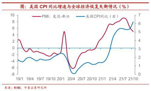 疫情难给通胀降温,政策收紧方向不变。正如前文所述,由于发达经济体特别是美国经济恢复已经步入稳态,疫情的新一轮扩散对其增长冲击相对有限,大概率不会引发GDP增速的大幅下滑。因此,中泰证券研究所认为目前判断加息会取消的理由并不充分。但是,由于疫情阻碍了全球联动恢复的进程,发达经济体和新兴市场的经济增长差距或将再度走扩,供需矛盾依然较为突出。这意味着恰恰是美联储最为担心的通胀问题,受到疫情扩散的干扰,短期很难得到有效缓解。由于美国货币政策立足点在于其国内而并非全球经济恢复情况,通胀难以降温会倒逼着美联储继续保持当前政策收紧的方向,甚至步伐还可能有所加快。