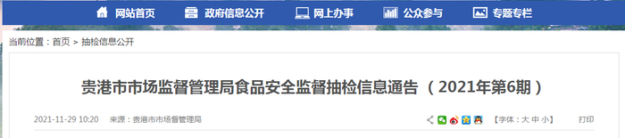 广西贵港市市场监管部门抽检643批次食品 22批次不合格