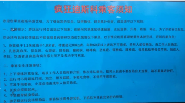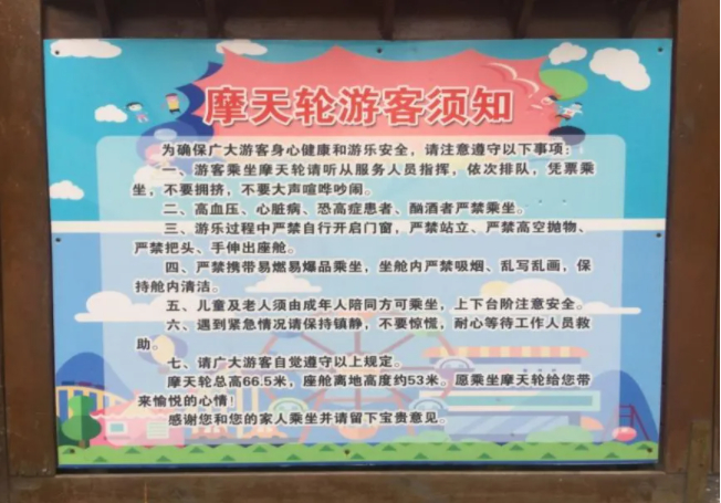 综上所述,只要大家在游玩的时候,合理选择适合自己和家人的大型游乐设施,按照“乘客须知”乘坐,那么游乐设施定会带来一场安全愉悦的奇妙之旅。(来源:济宁市场监管)