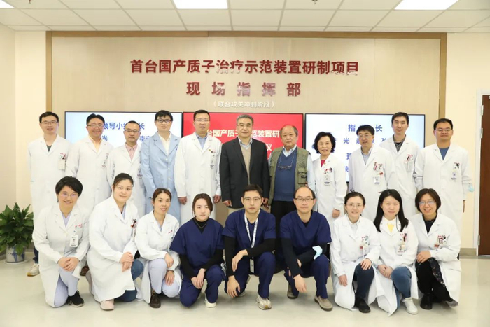 由中国科学院上海应用物理研究所,中国科学院上海高等研究院,上海艾普强粒子设备有限公司和瑞金医院联合研发的“国产首台质子治疗装置”是上海市自主创新和高新技术产业发展重大项目,于2012年正式立项,十年磨一剑,今日,随着第一批入组两例患者顺利开启了在本质子装置上的治疗,标志着首台国产化质子治疗装置的临床试验已正式启动,装置研发和应用已进入关键的实战阶段,这也是完成首台国产化质子装置的注册申请前最后一步的艰巨任务,也预示着瑞金医院在高质量发展的征途上又迈进了重要的一步。
