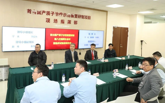 11月30日,首台国产质子示范装置研制第八次指挥长会议暨临床试验启动仪式于瑞金医院肿瘤(质子)中心召开。瑞金医院院长宁光,首台国产质子治疗装置首席科学家赵振堂,上海应用物理研究所所长戴志敏等相关设备研发、物理、医疗专家参会。会议由瑞金医院副院长陈海涛主持。