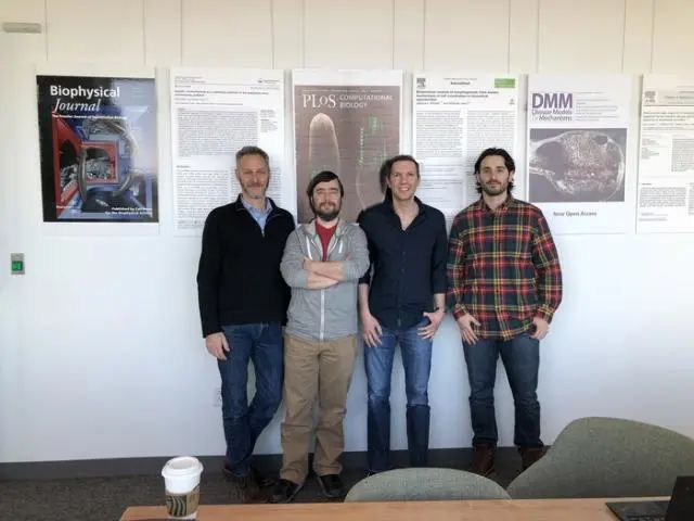 Xenobots 3.0的设计团队(左起):乔西·邦加德,佛蒙特大学;迈克尔·莱辛,塔夫茨大学和哈佛大学Wyss研究所;道格拉斯?布莱克斯顿,塔夫茨大学;山姆·克雷格曼,塔夫茨大学和哈佛大学Wyss研究所。图片来源:塔夫茨大学