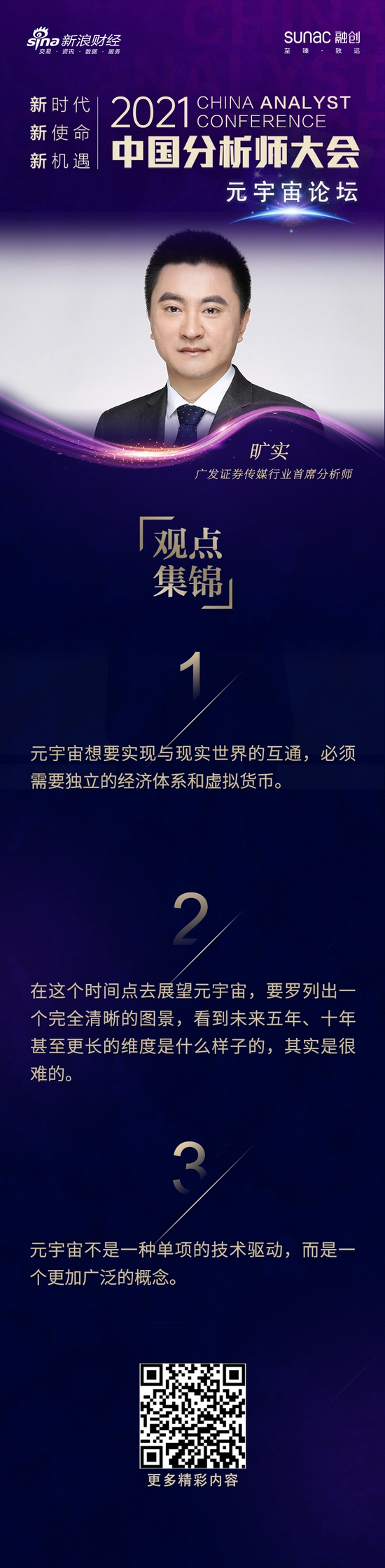今日,2021金麒麟年会之元宇宙专场隆重召开。广发证券传媒行业首席分析师旷实发表了主题演讲。
