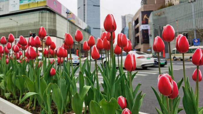 大宁商圈的郁金香开得正艳