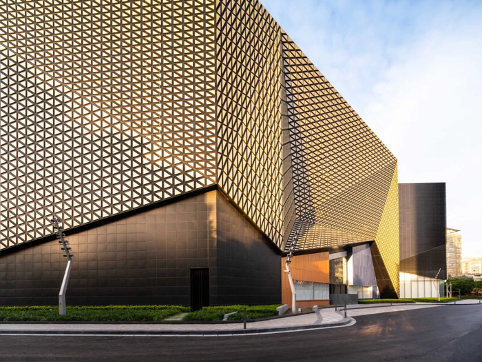上海久光中心独特的建筑造型,也蕴藏着“打卡基因”。这里随处可以看到拍照的人群。整个建筑不是封闭的盒子造型,留出了大面积的中庭空间,以“溪谷中蜿蜒流淌的溪流”为设计灵感,将现代的硬朗风格和东方折纸艺术的美感相融合。中庭看上去珠光淋漓,人步入其中,仿佛漫步在溪谷中一般。登高后的景观也非常不错,周边是大宁郁金香公园,远眺可见陆家嘴“三件套”……