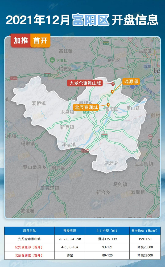 临安、富阳12月预计共有9个项目推新,其中有5个纯新盘、4个加推盘。