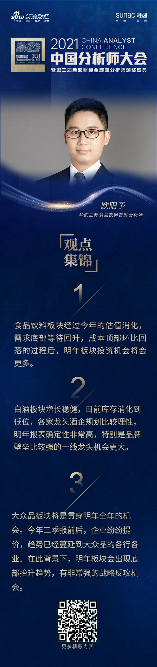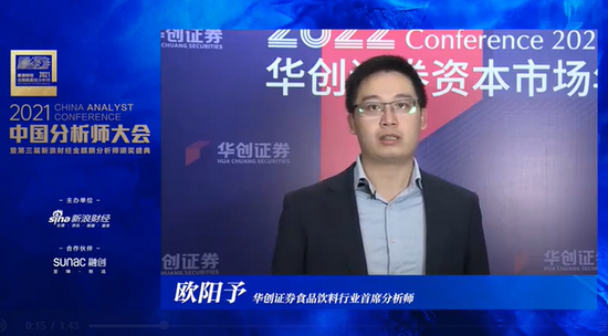 今天,2021中国分析师大会暨第三届新浪财经金麒麟最佳分析师颁奖盛典正在进行。华创证券食品饮料首席分析师欧阳予发表主旨演讲。