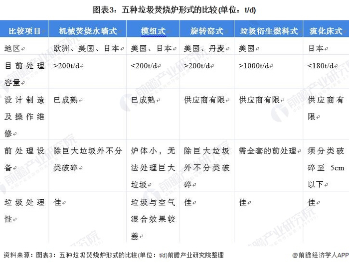 另外,从五种垃圾焚烧炉形式的代表区域和性能来看,欧美国家在机械焚烧水墙式、模组式两种形式的运行相对成熟,在旋转窑式、垃圾衍生燃料式、流化床式的供给水平有待提高。尤其是垃圾衍生燃料式,是垃圾焚烧炉的空白点机会。