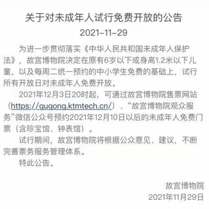此次故宫博物院“试行所有开放日对未成年人免费开放”,