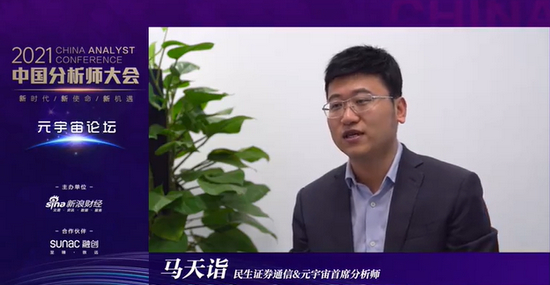 今日,2021金麒麟年会之元宇宙专场隆重召开。民生证券通信&元宇宙首席分析师马天诣发表主旨演讲。
