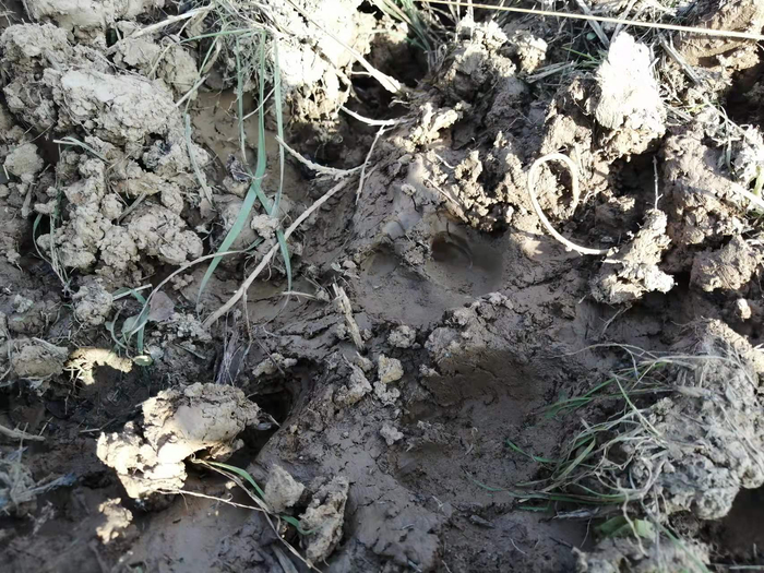 野猪留下的蹄印。摄影:赵孟