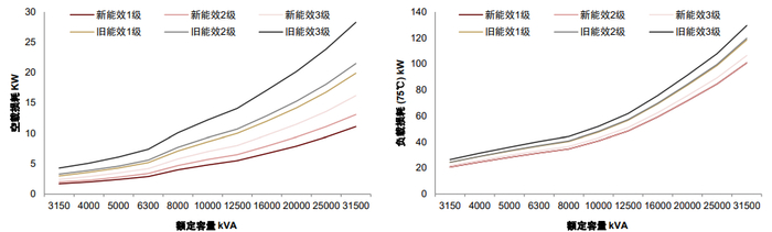 资料来源:电力变压器能效限定值及能效等级,中金公司研究部;注:上图指标要求对比以35kV油浸式三相双绕组无励磁调压电力变压器能效等级为例