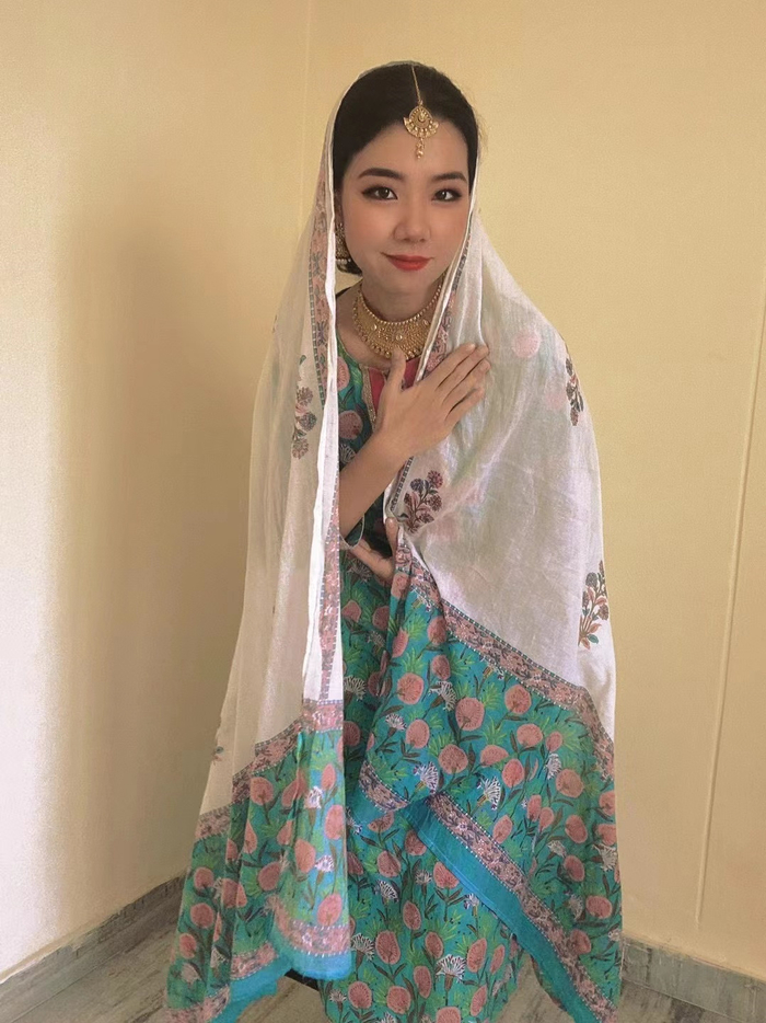 小陈身着印度传统服饰。(受访者供图)三年留学两年遇到疫情