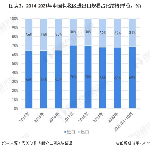 进出口前三保税区总规模占比达到89%