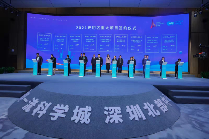 最后的签约仪式中,共有42个重大项目签约,计划投资总额超900亿元。据了解,今年以来,光明区立足科学城定位,大力开展招商引资工作,先后举办40场招商推介活动。这些项目的合作签约,将进一步推动光明区产业的集聚发展。