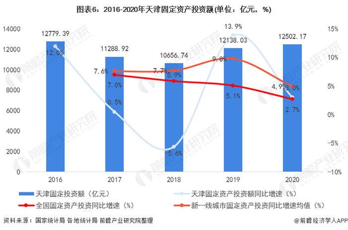 注:2018-2020年天津固定资产投资额为前瞻根据2017年天津固定资产投资额以及2018-2020年每年固定资产投资额的同比增速测算所得。