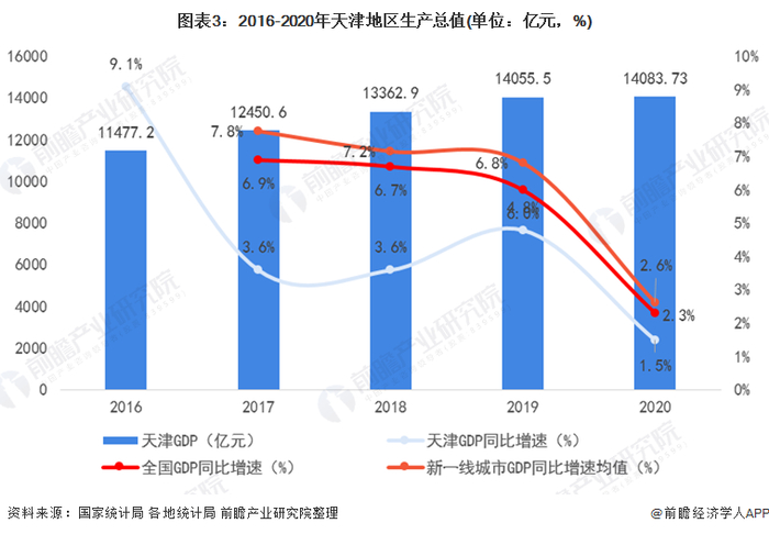 收藏!一文读懂2021年天津市发展现状(经济篇) 2020年GDP高于新一线城市平均值