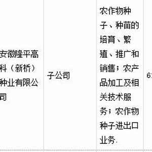 经中国经济网记者查询发现,隆平高科于2000年12月11日在深交所挂牌,截至2021年9月30日,中信农业科技股份有限公司为第一大股东,持股2.18亿股,持股比例16.54%。湖南隆平高科耕地开发有限公司(已更名为“湖南隆平高科农业开发有限公司”)、安徽隆平高科(新桥)种业有限公司均为隆平高科全资子公司。