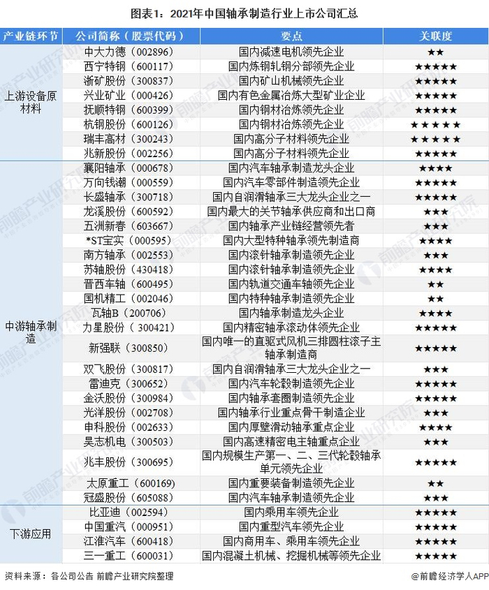 原标题:【最全】2022年轴承制造行业上市公司全方位对比(附业务布局汇总、业绩对比、业务规划等) 来源:前瞻产业研究院
