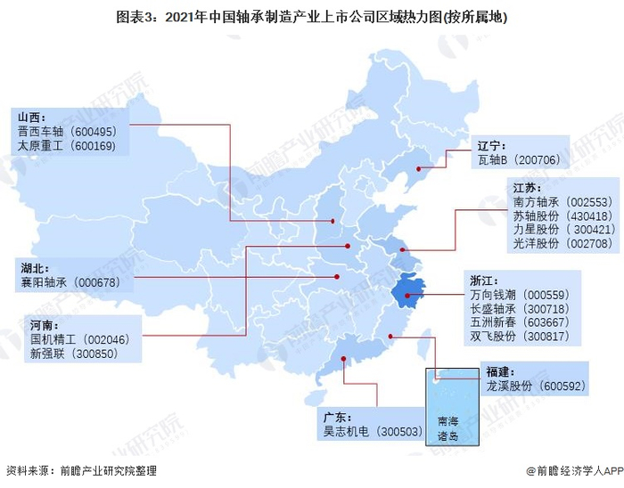 从上市公司的区域分布来看,浙江省轴承制造行业的上市企业数量全国领先,具体有万向钱潮(000559)、长盛轴承(300718)、五洲新春(603667)、双飞股份(300817)等;江苏省有南方轴承(002553)、苏轴股份(430418)、力星股份(300421)等企业,瓦轴B(200706)位于辽宁省。