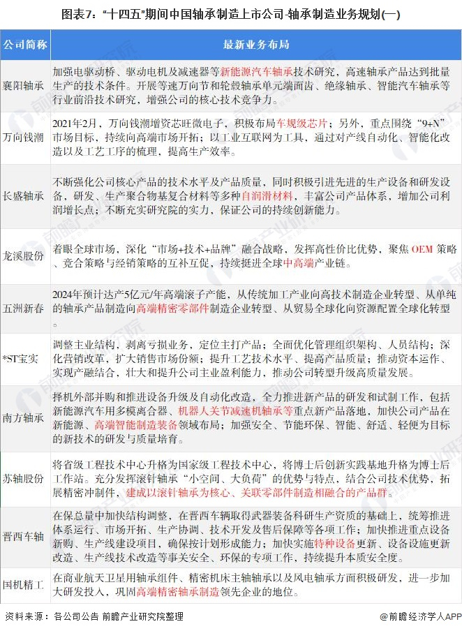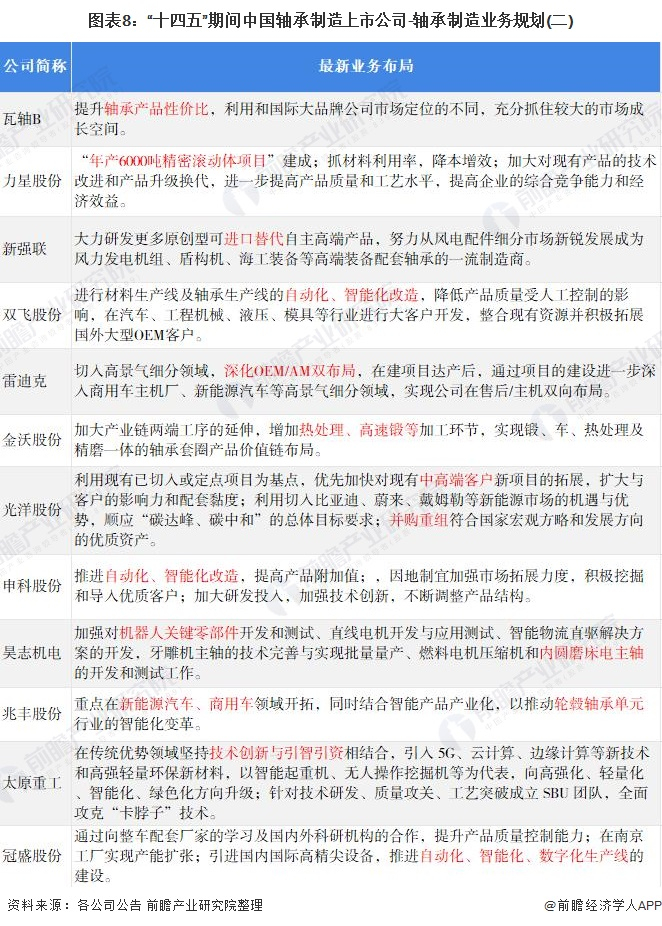 根据“十四五规划和2035年愿景目标纲要”,“十四五”期间,我国重视高端精密装备制造,以及加快智能化、自动化布局,而轴承则是重要的零部件。此外,轴承制造企业的其他上市公司也明确了其轴承制造业务的发展布局: