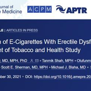 由纽约大学格罗斯曼医学院人口健康系的沙瓦伊博士主导,这项研究分析了共13711名年龄大于20岁的美国男性的自我报告数据。研究人员发现,约20.7%的人报告出现过勃起功能障碍,其中经常吸电子烟的男性患阳痿的可能性是不吸电子烟的2.2倍左右。