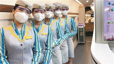 赣深高铁试运行列车上的乘务人员。