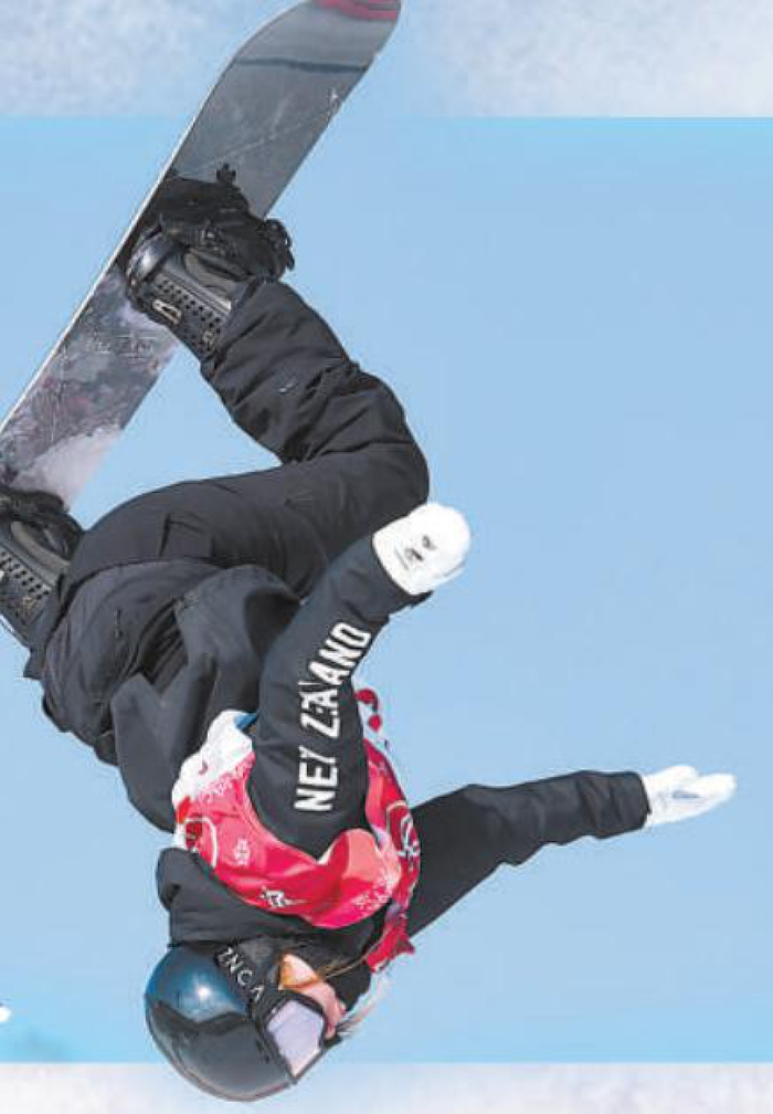 2018年第二十三届平昌冬奥会上,单板滑雪选手在空中翻“筋斗云”。