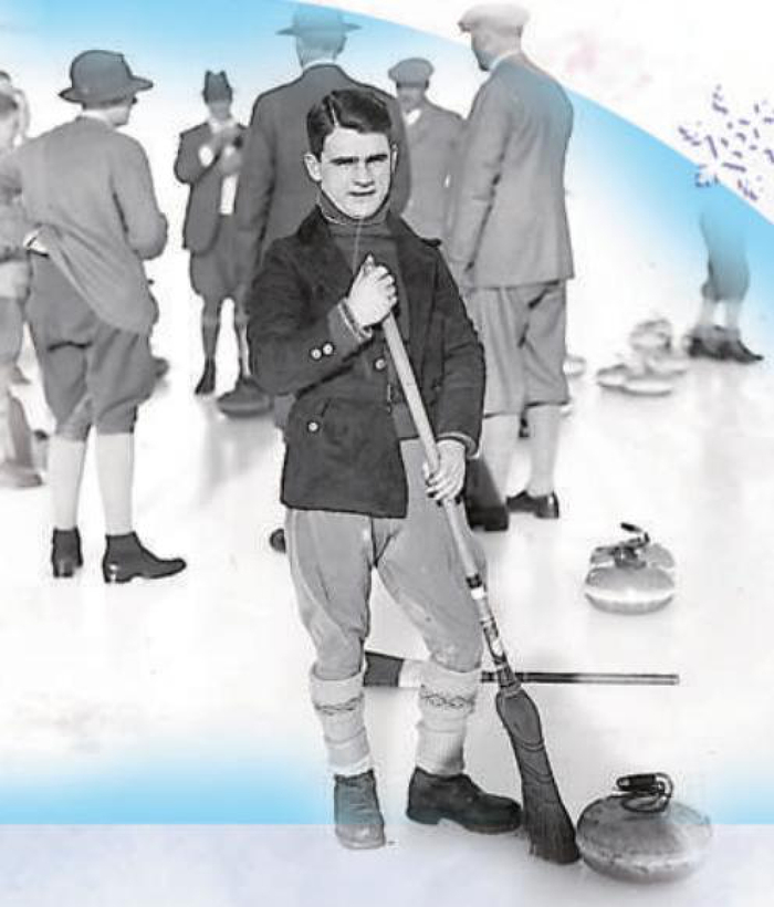 1928年第二届圣莫里茨冬奥会上,冰壶选手正在做表演赛前的准备。