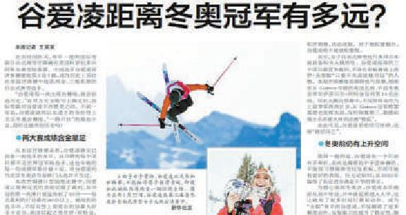 2021年3月18日《北京日报》10版报道,世锦赛上,中国小将谷爱凌在北京冬奥会新增小项——自由式滑雪大跳台比赛中摘铜。