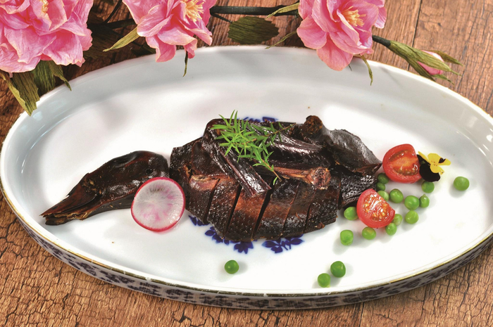 嘉兴市社科院文化研究所副所长、市文史研究馆馆员、市图书馆原馆长崔泉森告诉记者,展出的许多菜品选用了本地日常的食材,体现了嘉兴物产丰饶的特点,彰显出嘉兴人民的幸福生活。在做法上,菜品不过分追求制作技巧,而是通过激发食材本身的味道来吸引饕客,这也是一大亮点。此外,许多菜品都具有甜、糯、鲜等特点,体现了浓浓的江南味道。