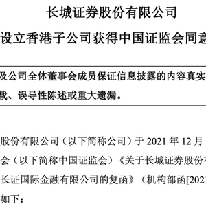 香港子公司获批设立,为长城证券国际化步伐再添一把火。