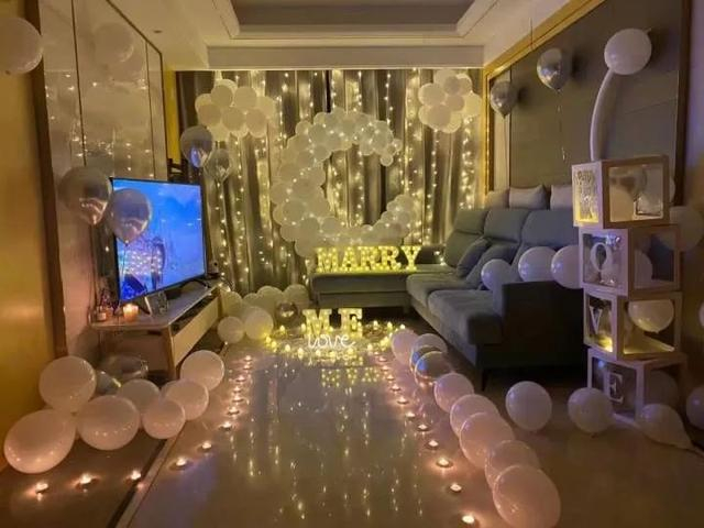 “那天我晚上9点多下班回到家,就遇到了突如其来的仪式。”小雪的男朋友是一名销售,上海人,相对于她,男友的工作轻松一些,所以悄悄在家里布置了起来,“很惊喜,我问他为什么选择在这天,他说,后天是一个成双成对的日子,错过了就要等9年。”