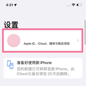 1、开启苹果手机设置菜单,点击最上方Apple ID。