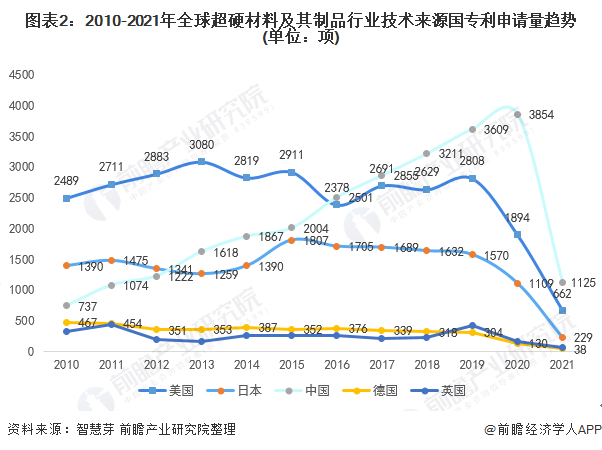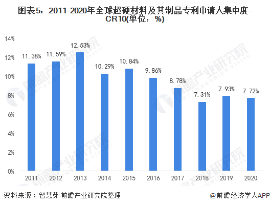 原标题:收藏!2022年全球超硬材料及其制品行业技术竞争格局(附区域申请分布、申请人排名、专利申请集中度等) 来源:前瞻产业研究院