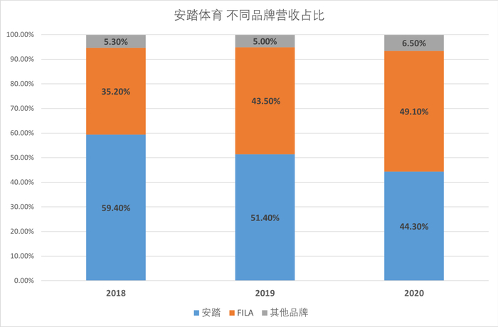 尽管安踏凭借以上收购打造了品牌矩阵,但整体上,安踏多品牌运营仍然显现出较为依赖FILA的趋势。