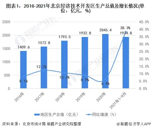 2020年,北京经济技术开发区生产总值突破2千亿元,达到2045.4亿元,同比增长6.4%,比2020年北京市GDP整体增速(1.2%)高出5.2个百分点。2021年前三季度,北京经济技术开发区生产总值同比高速增长38.3%,地区经济发展势头强劲。