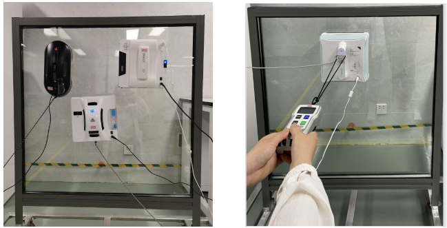 垂直机械拉力也有较大悬殊,最大为科沃斯(WG811)样品,实测80N,最小为玻妞(HOBOT-388)样品,实测仅需32N即从玻璃上坠落。
