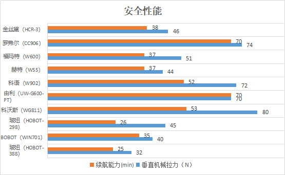 综合考量两方面的结果,科沃斯(WG811)、由利(UW-G600-PT)和罗弗尔(CC906)样品表现突出,其吸附力和电池续航能力较好,即安全性能较高。