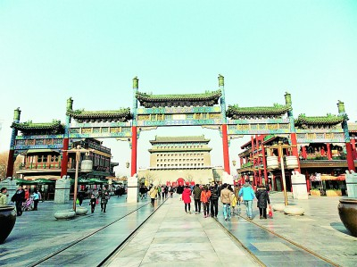 四、对前门大街的微观景观进行适度调整,比如,可在鸟笼形状的白色路灯上喷涂彩色的京剧脸谱;在有轨电车的车厢外面张贴京戏海报;适时播放京剧音乐,组织演员做行为艺术表演,从而突显前门大街的京剧元素,进而彰显北京中轴线多角度的文化与艺术色彩。